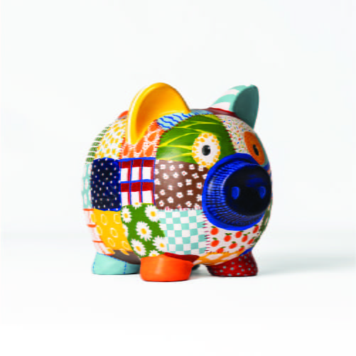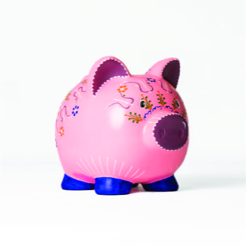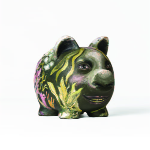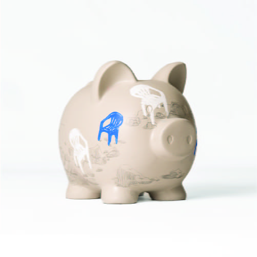 "Spargrisen håller sig till det ursprungliga, dels med den rosa färgen och de klassiska orientaliska mönstren. Kontanter är det ursprungliga betalningsmedlet och det jag vill förmedla med spargrisen är att allt gammalt inte nödvändigtvis är dåligt, ibland är det tvärtom."